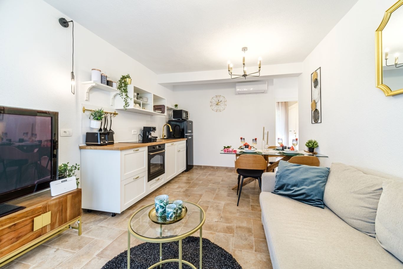 House can accommodate 5 guests. Beds are situated in 2 sleeping rooms, but also in the living room, within 57m2. Guests can use a private terrace to enjoy the warm summer evenings. For full enjoyment and relaxation there is a private barbecue for this accommodation guests only. During stay, there is a private pool for relaxation and pleasure. This accommodation unit welcomes pets at an additional charge. INCLUDED IN THE PRICE: tourist tax, final cleaning, air-conditioning, pool, parking, internet, baby cot, iron, ironing board, hairdryer. OBLIGATORY ADDITIONAL COSTS: short stay fee (surcharge depending on a number of booked nights: 30% - 1, 20% - 2, 10% - 3). OPTIONAL ADDITIONAL COSTS: pets (€15.00 per night). The availability of additional services for your chosen dates of stay, as well as their prices (if none are listed) must be checked ahead of time. Any additional services not shown in the price calculation are payable directly to the property owner and only if used by the visitor.