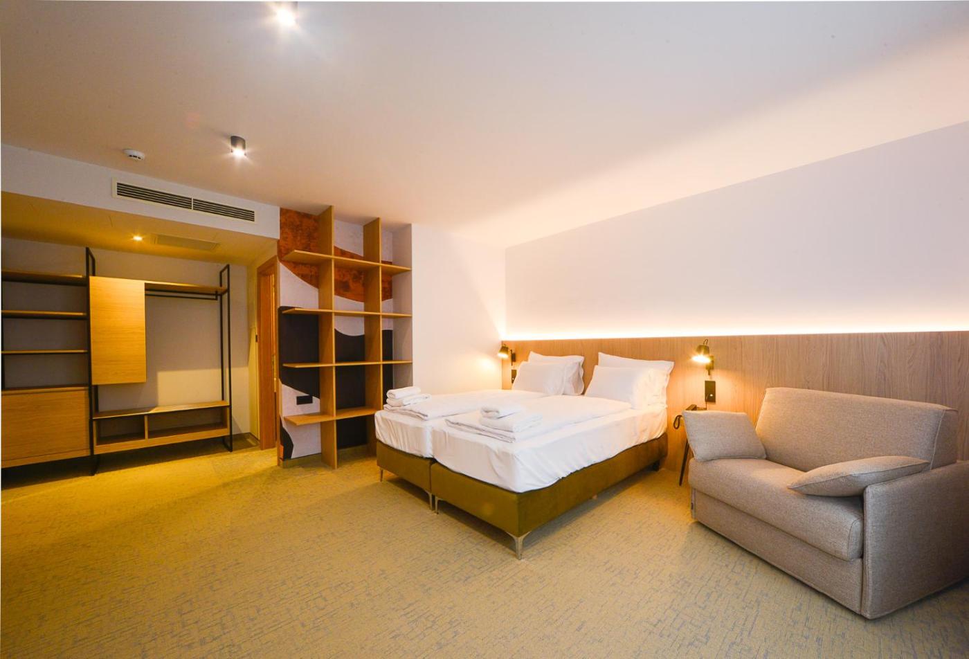 Deluxe Double Room with Extra Bed. Providing free toiletries, this double room includes a private bathroom with a shower and a hairdryer. The spacious double room provides air conditioning, a wardrobe, heating, a flat-screen TV with cable channels, as well as mountain views. The unit offers 3 beds.