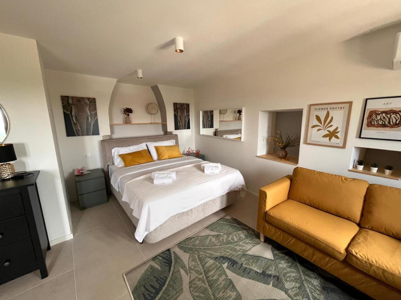One-Bedroom Apartment. This air-conditioned apartment comes with 1 living room, 1 separate bedroom and 1 bathroom with a shower. Guests will find a stovetop, a refrigerator, kitchenware and an oven in the well-fitted kitchen. The apartment also includes a barbecue. The apartment features a washing machine, a tea and coffee maker, a sofa, a flat-screen TV, as well as mountain views. The unit has 2 beds.