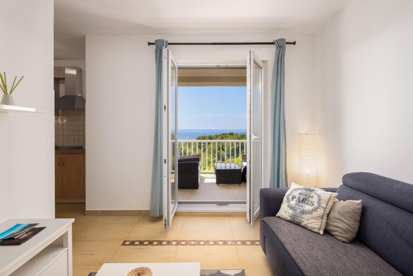 Apartment with Sea View. Featuring a private entrance, this air-conditioned apartment is comprised of 1 living room, 1 separate bedroom and 1 bathroom with a shower and a hairdryer. The well-equipped kitchen features a stovetop, a refrigerator, a dishwasher and an oven. Boasting a terrace with sea views, this apartment also offers a washing machine and a flat-screen TV with cable channels. The unit offers 2 beds.