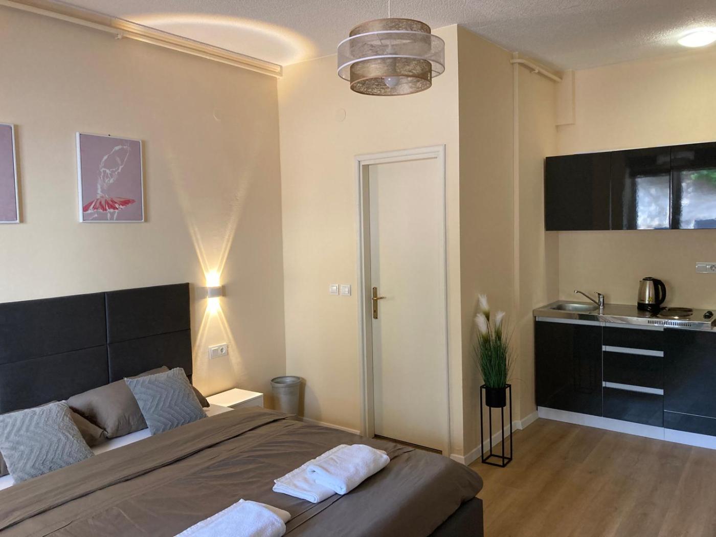 Studio Apartment. The apartment features 1 bedroom, 1 bathroom and a kitchen. The apartments kitchen is available for cooking and storing food. The apartment has a terrace. The unit offers 1 bed.