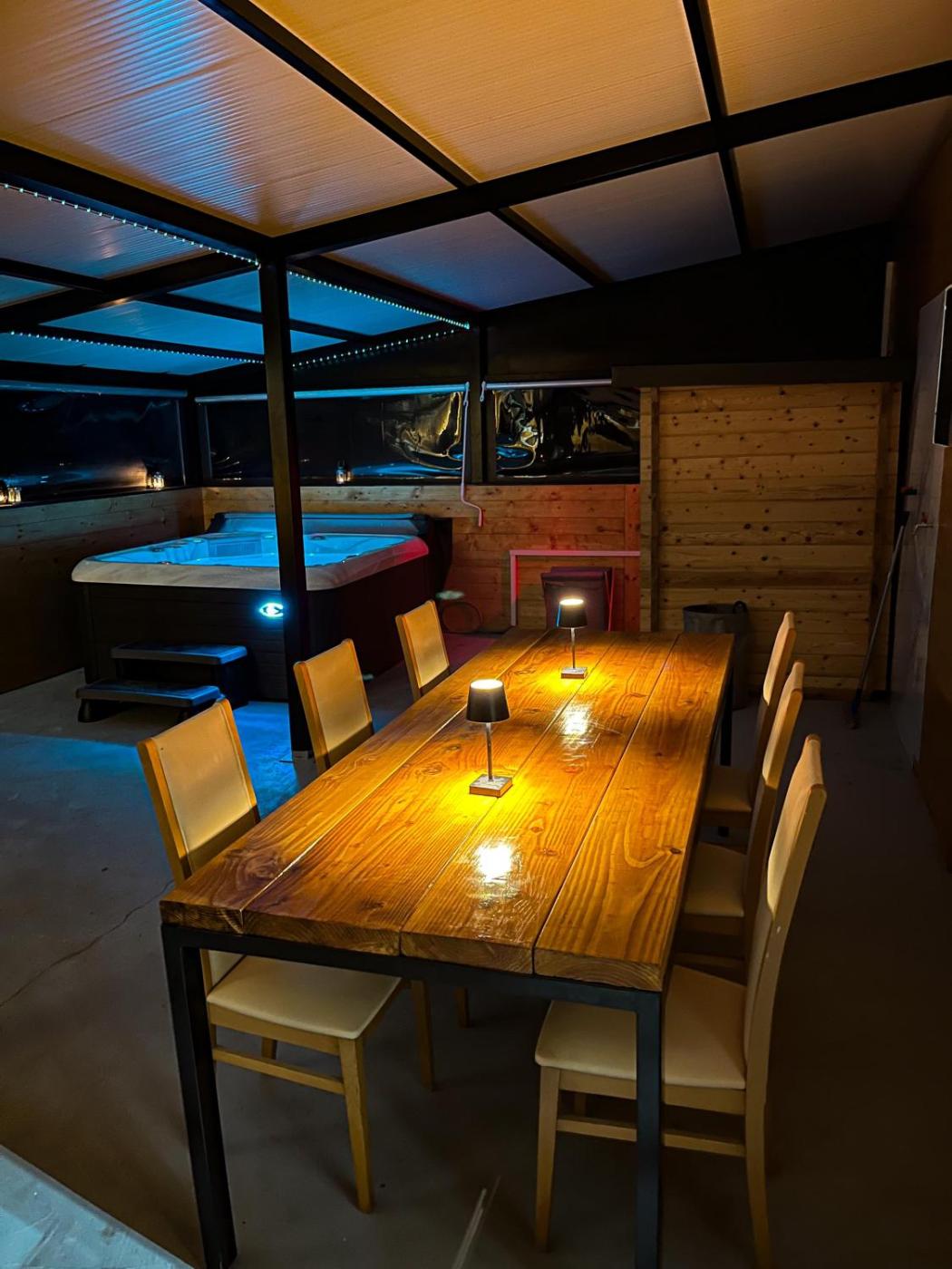 Three-Bedroom Home. This luxurious holiday home offers a hot tub, a spa bath and a sauna. This spacious holiday home consists of 1 living room, 3 separate bedrooms and 2 bathrooms with a shower and free toiletries. Guests will find a stovetop, a refrigerator, an oven and a tea and coffee maker in the kitchen. The holiday home also offers a barbecue. The holiday home provides a washing machine, a private entrance, soundproof walls as well as a terrace with garden views. The unit offers 7 beds.