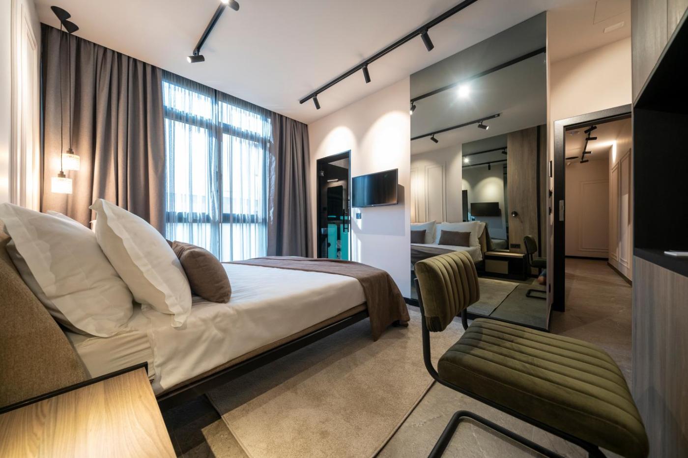 Deluxe Double Room. Offering free toiletries, this double room includes a private bathroom with a walk-in shower, a hairdryer and slippers. The air-conditioned double room offers a flat-screen TV with cable channels, a private entrance, soundproof walls, a minibar as well as a quiet street view. The unit has 1 bed. ;